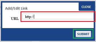 3) In the popup that appears, fill in or paste the URL of the page you want to link to and click "Submit".