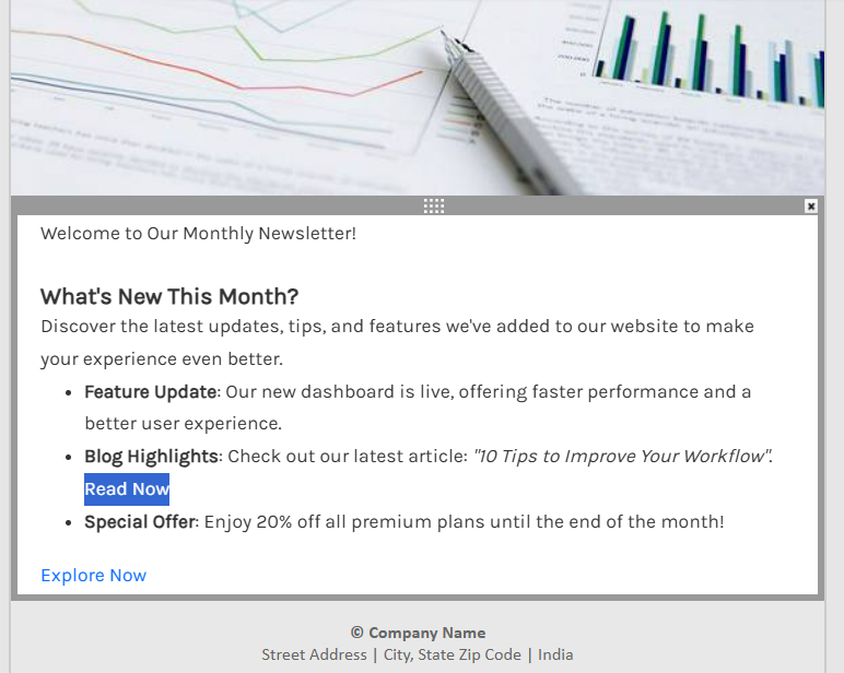 - We recommend avoiding the use of the actual URL address in the body of your email to prevent it from being blocked by spam filters. Instead, use text like "Read More" or "Learn More".