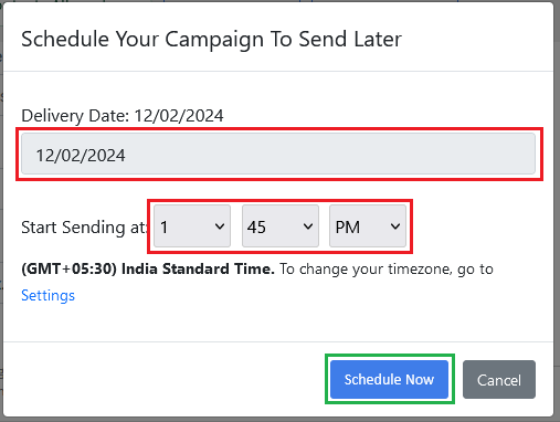 2. Send Campaign Later [Schedule Delivery]: This option lets you specify the time and date to send your email.