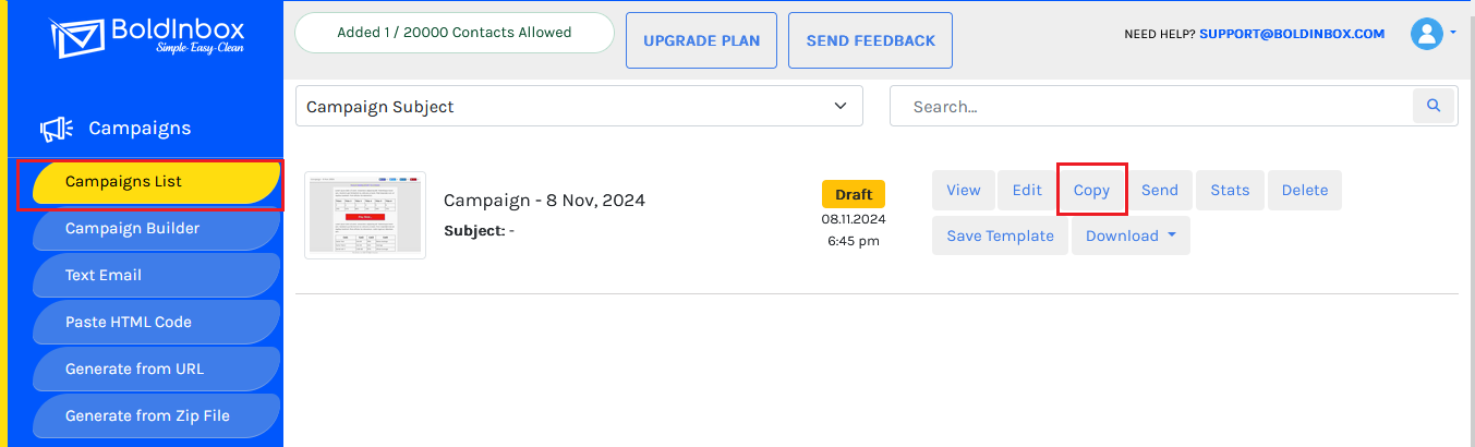 2. Click the "Copy" button located next to the edit button you want to copy or duplicate.
