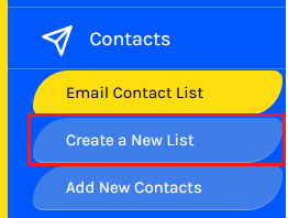 1. Go to the Contacts page, you will see "Create a New List" Menu located below the "Email Contact List".